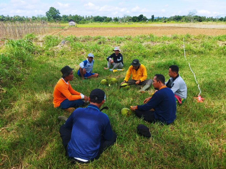 PEMERINTAH DESA BERSAMA P3A MELAKUKAN PENGUKURAN SALURAN AIR